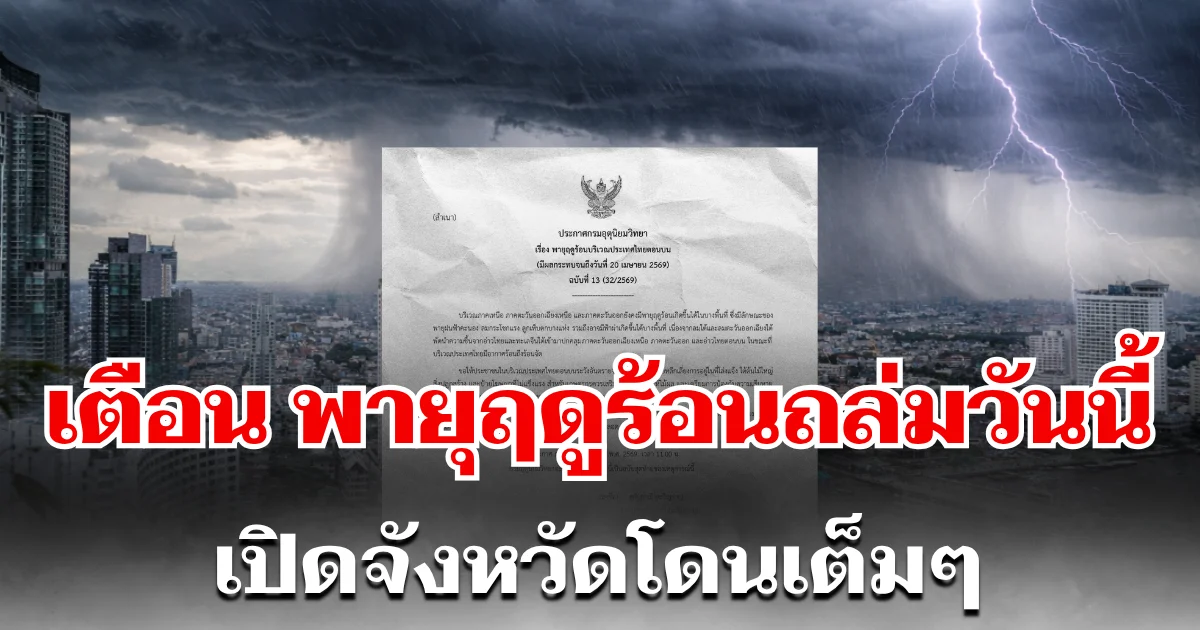 เมื่อวันที่ 20 เมษายน 2569 ศูนย์ประชาสัมพันธ์กรม อุตุนิยมวิทยา ประกาศกรมอุตุนิยมวิทยา เรื่อง พายุฤดูร้อนบริเวณประเทศไทยตอนบน (มีผลกระทบจนถึงวันที่ 20 เมษายน 2569) ฉบับที่ 13 (32/2569)