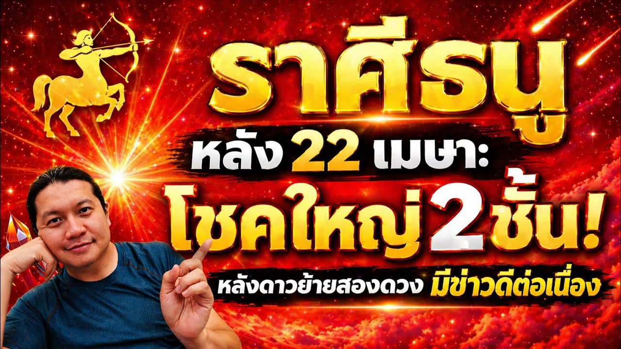 ราศีธนู หลัง 22 เมษา: โชคใหญ่ 2 ชั้น! ดาวย้ายซ้อน เปิดข่าวดีต่อเนื่อง 🏹✨