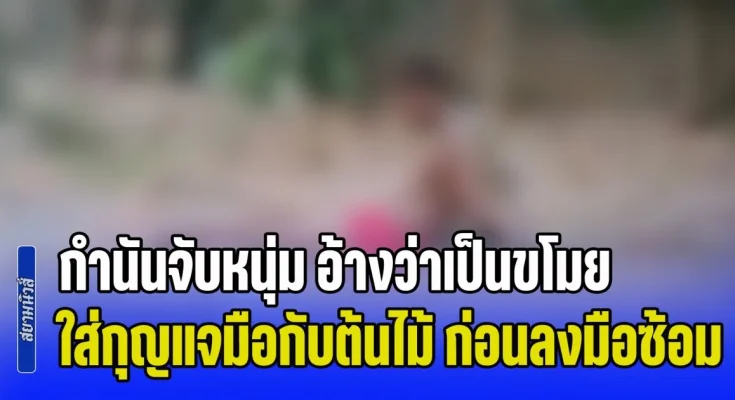 โดยได้มัดนายตึกไว้กับต้นมะม่วง และได้เอามดแดง มาเคาะใส่หัว จนเวลาผ่านไป 2 ทุ่ม เจ้าหน้าที่ตำรวจศรีนครินทร์มา แต่ที่น่าแปลกใจคือ ถ้านายตึกทำผิดจริงทำไมไม่เอาไปโรงพักดำเนินคดี จนเจ้าหน้าที่ศรีนครินทร์กลับแต่ก็ไม่ยอมแก้กุญแจมือ