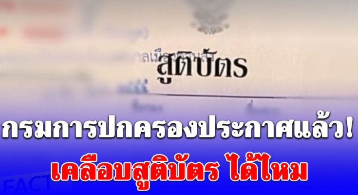 กรมการปกครองโพสต์ชี้แจง การเคลือบสูติบัตร ทำได้ ไม่เป็นโมฆะ สูติบัตรเป็นเอกสารการทะเบียนราษฎรที่นายทะเบียนผู้รับแจ้งออกเป็นหลักฐานแก่ผู้แจ้งการเกิดตามกฎหมายทะเบียนราษฎร