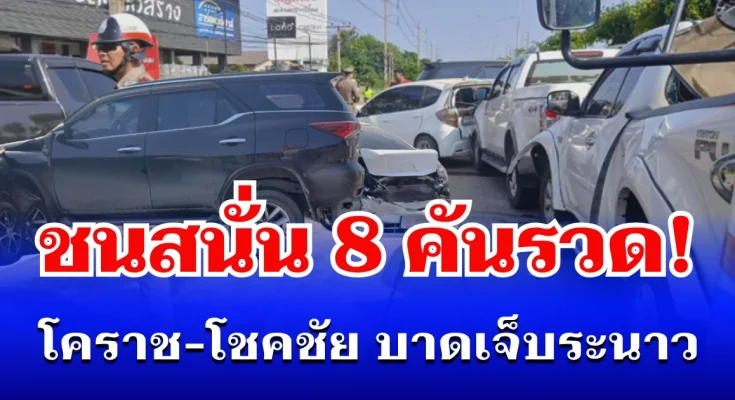 เมื่อเวลา 08.15 น. วันที่ 28 เมษายน 2569 เกิดอุบัติเหตุรถยนต์ชนท้ายต่อเนื่องกัน 8 คัน บนถนนหมายเลข 224 เส้นทางราชสีมา – โชคชัย ขาออกตัวเมือง บริเวณหน้าร้านจำหน่ายอุปกรณ์ก่อสร้าง ในพื้นที่ตำบลหนองบัวศาลา อำเภอเมือง จังหวัดนครราชสีมา ส่งผลให้การจราจรติดขัดยาวหลายกิโลเมตร