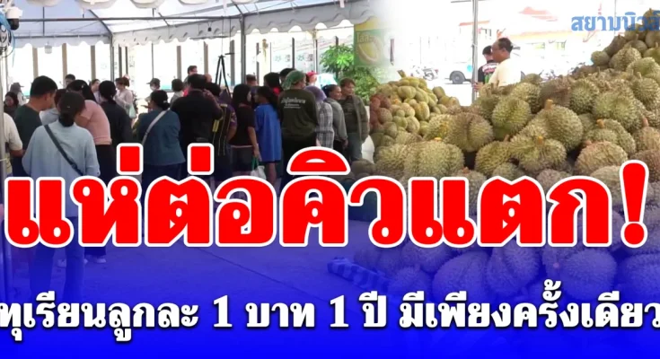 วันที่ 28 เมษายน 2569 ที่บริเวณหน้าสวนนกชัยนาท ต.เขาท่าพระ อ.เมือง จ.ชัยนาท ประชาชนจำนวนมากแห่เดินทางมาจับจ่ายซื้อทุเรียนอย่างเนืองแน่น หลังร้าน “เจ๊ดา ผลไม้ซิ่ง” จัดโปรโมชั่นพิเศษทุเรียนลูกละ 1 บาท จำกัดวันละ 200 สิทธิ์ พร้อมนำทุเรียนหลากหลายสายพันธุ์มาจำหน่ายในราคาถูกกว่าท้องตลาด โดยมีราคาเริ่มต้นที่สายพันธุ์นกกระจิบ กระดุม และชะนี กิโลกรัมละ 59 บาท หมอนทองจันทบุรี กิโลกรัมละ 79 บาท หมอนทองระยอง กิโลกรัมละ 99 บาท และแบบเนื้อล้วนแกะโชว์เพียงขีดละ 39 บาท สร้างความดีใจให้แก่ผู้ที่มาเลือกซื้อซึ่งต่างได้รับผลไม้กลับไปฝากลูกหลานในราคาประหยัด