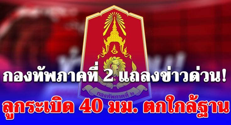 ด่วน.! กองทัพภาคที่ 2 เผย เหตุลูกระเบิด 40 มม. ตกใกล้ฐาน พื้นที่พลาญหินแปดก้อน