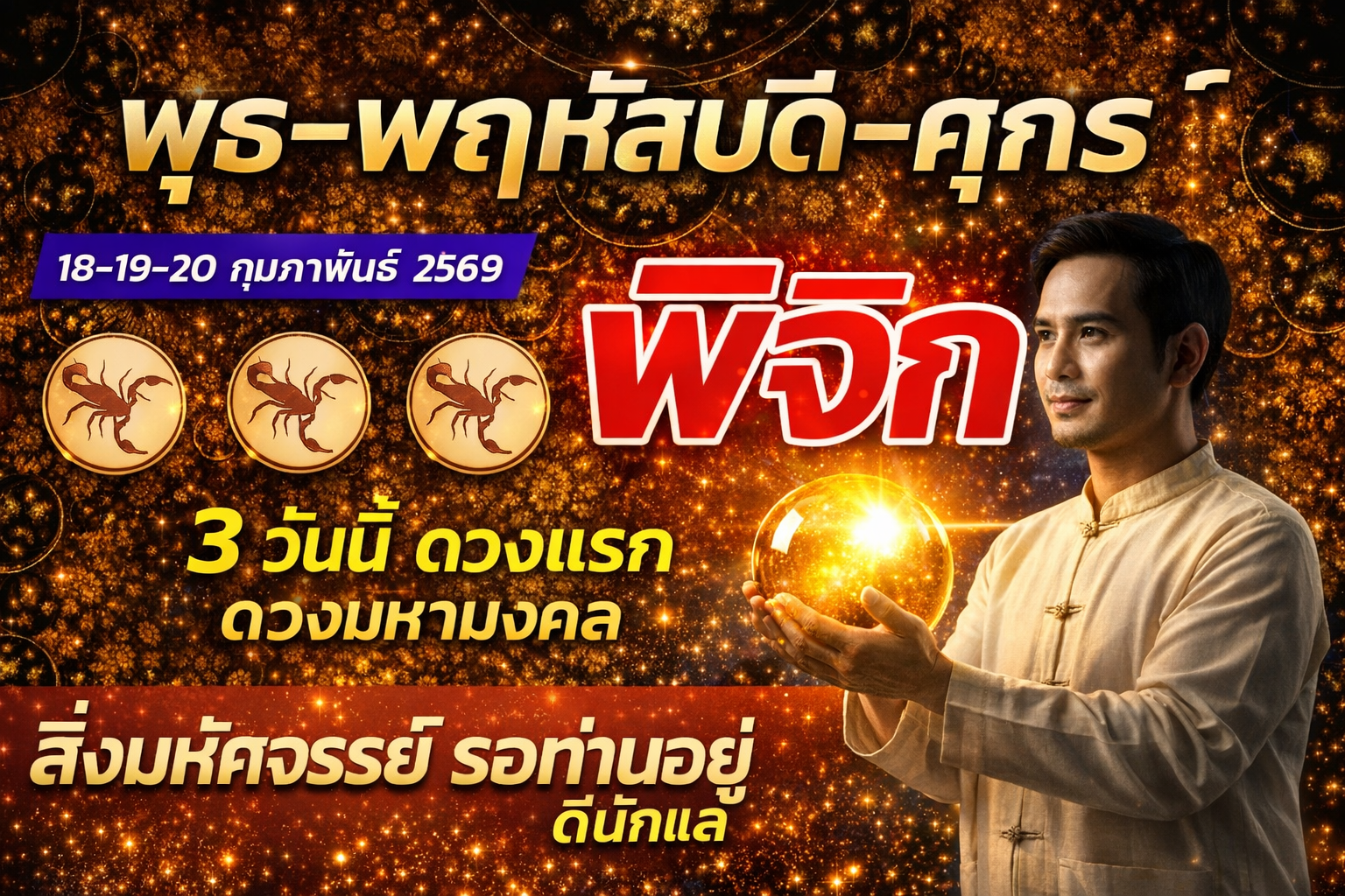 ราศีพิจิก ดวงชะตา พุธ พฤหัสบดี ศุกร์ 3 วันนี้ ดวงเฮง ดวงดี สิ่งมงคลปรากฎ ดวงชะตาดีเกินคาด ดีนักแล
