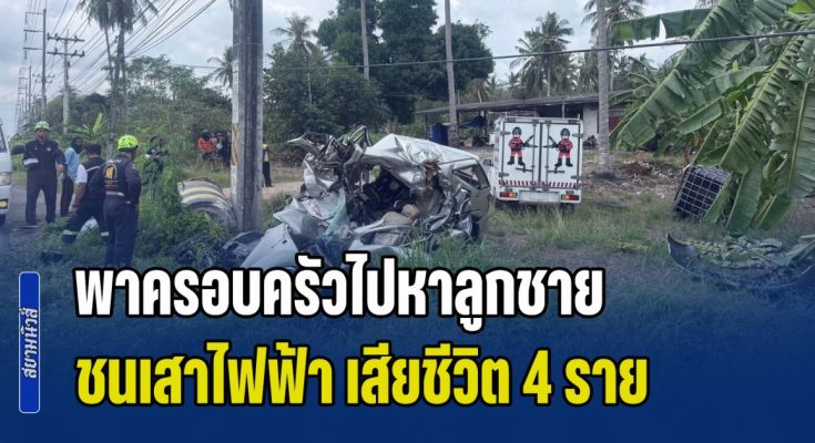เมื่อเวลา 10.30 น. วันที่ 20 ก.พ. 2569 เจ้าหน้าที่ตำรวจ สภ.ธงชัย ได้รับแจ้งเหตุรถยนต์เสียหลักพุ่งลงข้างทางชนเสาไฟฟ้า มีผู้เสียชีวิตหลายราย บริเวณถนนเพชรเกษม (ขาขึ้นกรุงเทพฯ) กม.370+700 หมู่ 2 บ้านหนองจันทร์ ต.ชัยเกษม อ.บางสะพาน จ.ประจวบคีรีขันธ์ หลังรับแจ้ง จึงเดินทางเข้าตรวจสอบ พร้อมประสานแพทย์เวรโรงพยาบาลบางสะพาน เจ้าหน้าที่มูลนิธิสว่างราษฎร์ศรัทธาธรรมสถาน และหน่วยกู้ชีพ อบต.ชัยเกษม
