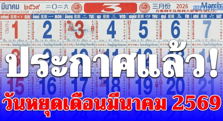 ประกาศแล้ว! วันหยุดเดือนมีนาคม 2569