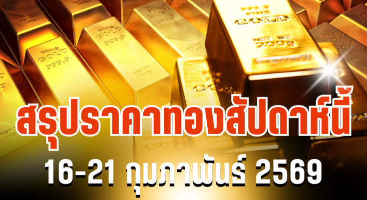 สรุปราคาทองคำในประเทศไทยของสัปดาห์นี้ ระหว่างวันที่ 16-21 กุมภาพันธ์ 2569 โดยข้อมูลจาก สมาคมค้าทองคำ พบว่าสัปดาห์ที่ผ่านมา ราคาทองคำไทยยังคงเคลื่อนไหวในระดับสูงจากแรงซื้อในตลาดและราคาทองคำโลกที่ขยับขึ้นต่อเนื่องตั้งแต่ต้นสัปดาห์ ก่อนจะมีการผันผวนหนัก ทั้งปรับขึ้นและปรับลงในแต่ละวันตามแรงขายทำกำไรและปัจจัยด้านอุปสงค์ อย่างไรก็ตาม จะเห็นได้ว่าราคาทองในปัจจุบันมีการเเกว่งตัวเเละยังคงมีการผันผวนที่เพิ่มขึ้น เเต่ทั้งนี้ทั้งนั้น หากมองในภาพรวมราคาทองยังคงมีเเนวโน้มเป็นขาขึ้นอย่างชัดเจน