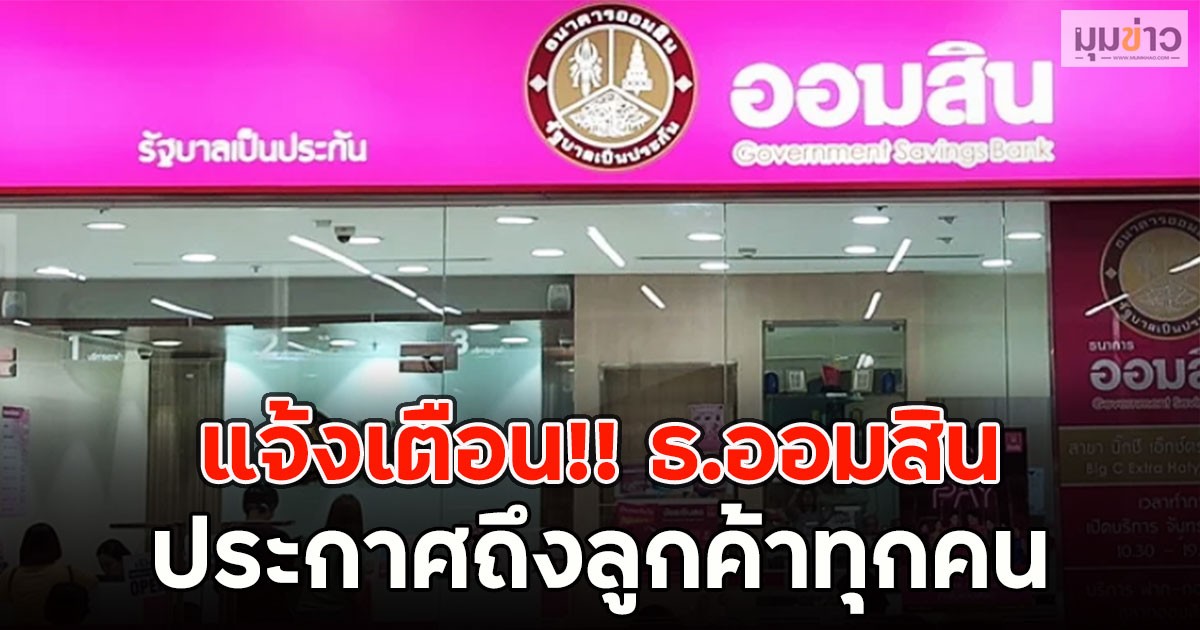 แจ้งเตือน!! ธ.ออมสิน ประกาศถึงลูกค้าทุกคน