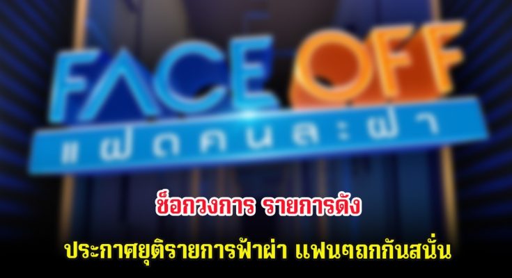 เรียกได้ว่าเป็นอีกหนึ่งรายการที่สร้างความสนุกสนานให้กับแฟนๆกันอย่างมากสำหรับรายการ FACE OFF แฝดคนละฝา ทางช่องเวิร์คพอยท์ 23 ล่าสุดเมื่อช่วงกลางดึกของวันที่ 26 ก.พ. 69 ทางเพจรายการได้ออกมาโพสต์ข้อความว่า แถลงจากรายการ Face Off แฝดคนละฝา รายการเราขอยุติการออกอากาศแต่เพียงเท่านี้