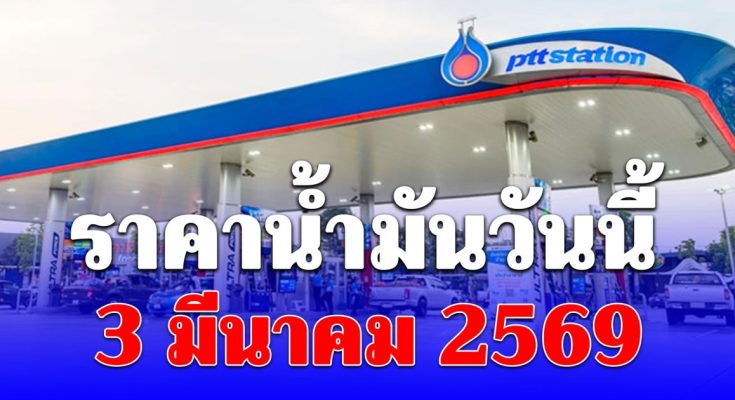 ราคาน้ำมันวันนี้ 3 มีนาคม 2569 โดยราคาน้ำมันขายปลีกในพื้นที่กรุงเทพฯ ที่ยังไม่รวมภาษีบำรุงท้องถิ่นวันนี้ เป็นดังนี้