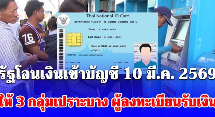 เงินช่วยเหลือกลุ่มเปราะบาง 3 กลุ่ม ในเดือนมีนาคม 2569 ยังคงได้รับตามกำหนดเดิมทั้ง เงินอุดหนุนเพื่อการเลี้ยงดูเด็กแรกเกิด เบี้ยผู้สูงอายุ และเบี้ยคนพิการ มีรายละเอียดดังนี้