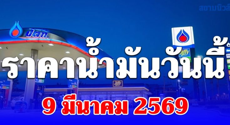 ราคาน้ำมันวันนี้ 9 มีนาคม 2569 โดยราคาน้ำมันขายปลีกในพื้นที่กรุงเทพฯ ที่ยังไม่รวมภาษีบำรุงท้องถิ่นวันนี้ เป็นดังนี้