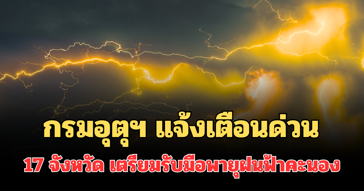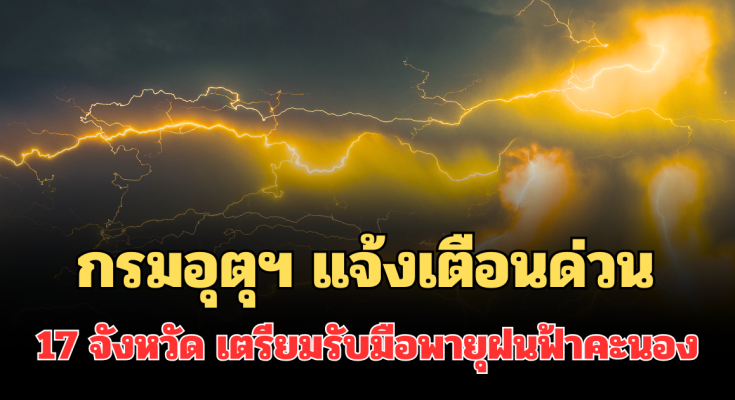 ประกาศแล้ว! กรมอุตุฯ แจ้งเตือนด่วน รายชื่อ 17 จังหวัด พรุ่งนี้เตรียมรับมือพายุฝนฟ้าคะนอง