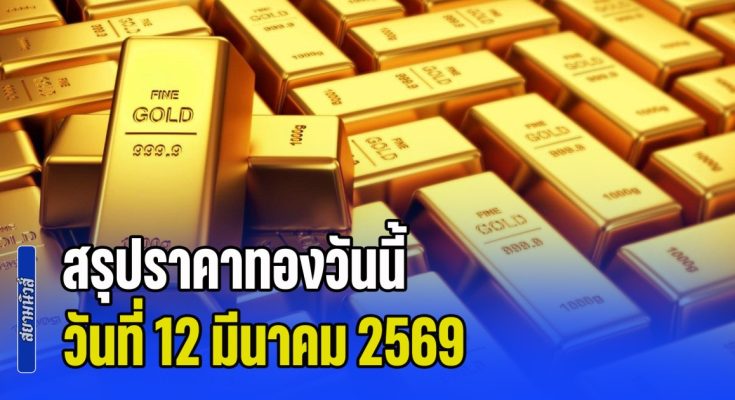 สรุปราคาทองวันนี้ 12 มีนาคม 2569 หลังเช้านี้ สมาคมค้าทองคำ ประกาศราคาทองครั้งที่ 1 (เปิดตลาด) เมื่อเวลา 09.10 น. ปรับเพิ่มขึ้นเพียง 50 บาท สู่บริเวณ 77,950 บาท