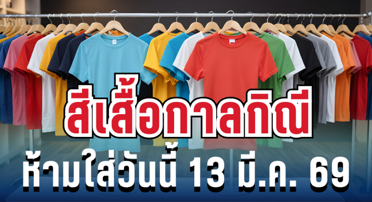 โดยสีเสื้อมงคล สำหรับวันศุกร์ที่ 13 มีนาคม 2569 มีดังนี้