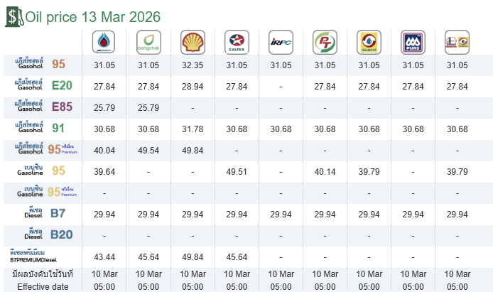 ราคาน้ำมันประจำวันที่ 13 มีนาคม 2569