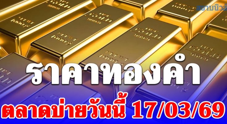 สมาคมค้าทองคำ รายงานว่า ราคาทองวันนี้ 17 มีนาคม 2569 เวลา 13:03 น. ราคาทองครั้งที่ 6 เพิ่มขึ้น 350 บาท โดยมีรายละเอียดดังนี้