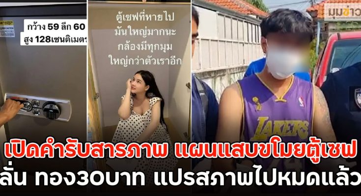ในวันเกิดเหตุ 8 มีนาคม ผู้ต้องหาได้ตัดระบบกล้องวงจรปิดช่วงเวลา 19.00–22.00 น. พร้อมถอดกล้องในลิฟต์ จากนั้นใช้กุญแจสำรองที่แอบนำมา ไขเข้าห้องพัก ก่อนช่วยกันเข็นตู้เซฟลงจากคอนโด นำขึ้นรถกระบะที่เตรียมไว้ แล้วนำไปซ่อนไว้ในบ้านร้างภายในหมู่บ้านรุ่งนิรันดร์ 6 เพื่อทำการเจาะตู้