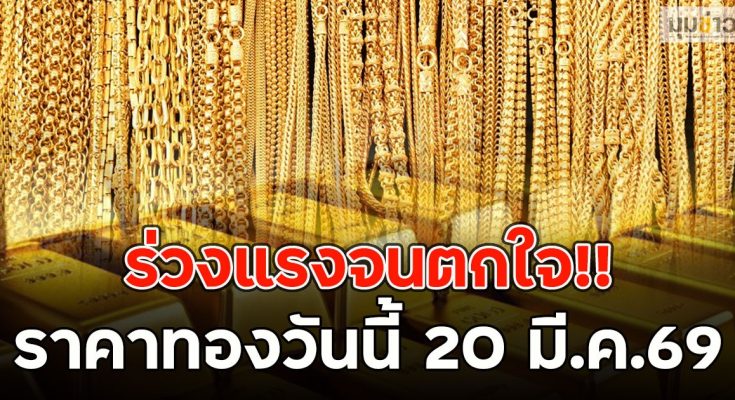ราคาทองคำประจำวันที่ 20 มี.ค.2569 ร่วงลงแรง 650 บาท เปรียบเทียบกับราคาสุดท้ายของเมื่อวันที่ 19 มี.ค.ที่ผ่านมา โดยทองรูปพรรณขายออกที่บาทละ 73,050 บาท อ้างอิงข้อมูลล่าสุดจาก สมาคมค้าทองคำ ที่เผยแพร่ผ่านทางเว็บไซต์ เมื่อเวลา น.ที่ผ่านมา