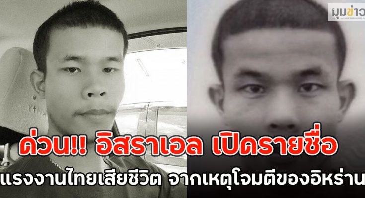 วันที่ 19 มี.ค. 2569 กระทรวงการต่างประเทศอิสราเอล เปิดเผยว่า แรงงานไทยที่เสียชีวิตจากเหตุโจมตีของอิหร่าน คือ นายวาลิน ชายุต (Walin Chayut) อายุ 33 ปี พร้อมเผยภาพประกอบแสดงความอาลัย