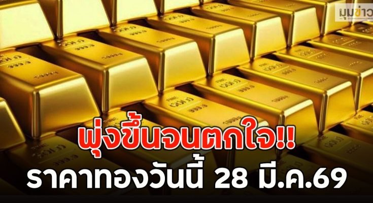 ราคาทองคำวันนี้ ประจำวันที่ 28 มี.ค.2569 พุ่งขึ้นแรง 1,000 บาท เปรียบเทียบกับราคาสุดท้ายของเมื่อวันที่ 27 มี.ค.ที่ผ่านมา โดยทองรูปพรรณขายออกที่บาทละ 70,900 บาท อ้างอิงข้อมูลล่าสุดจาก สมาคมค้าทองคำ ที่เผยแพร่ผ่านทางเว็บไซต์ เมื่อเวลา 09.00 น.ที่ผ่านมา