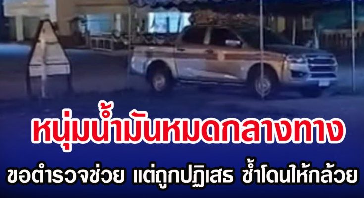 แม้จะมีการตรวจสอบผ่านแอปพลิเคชันแล้วพบว่า บริเวณปั๊มน้ำมันในพื้นที่ ร่องห้า จังหวัดพะเยา ยังพอมีน้ำมันให้บริการ จึงตัดสินใจขับต่อมาแต่รถกลับน้ำมันหมดก่อนถึงจุดหมายเพียงไม่ถึง 20 กิโลเมตร ทำให้ต้องเดินเข้าไปขอความช่วยเหลือจากเจ้าหน้าที่ตำรวจภายในป้อมยามดังกล่าว โดยขอให้ช่วยนำไปซื้อน้ำมัน หรือช่วยประสานเพื่อให้สามารถเดินทางต่อได้