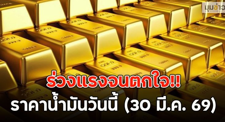 ราคาทองคำประจำวันที่ 30 มี.ค.2569 ปรับลดลง 300 บาท เปรียบเทียบกับราคาสุดท้ายของเมื่อวานนี้ โดยทองรูปพรรณขายออกที่บาทละ 70,600 บาท อ้างอิงข้อมูลล่าสุดจาก สมาคมค้าทองคำ ที่เผยแพร่ผ่านทางเว็บไซต์ เมื่อเวลา 09.03 น.ที่ผ่านมา