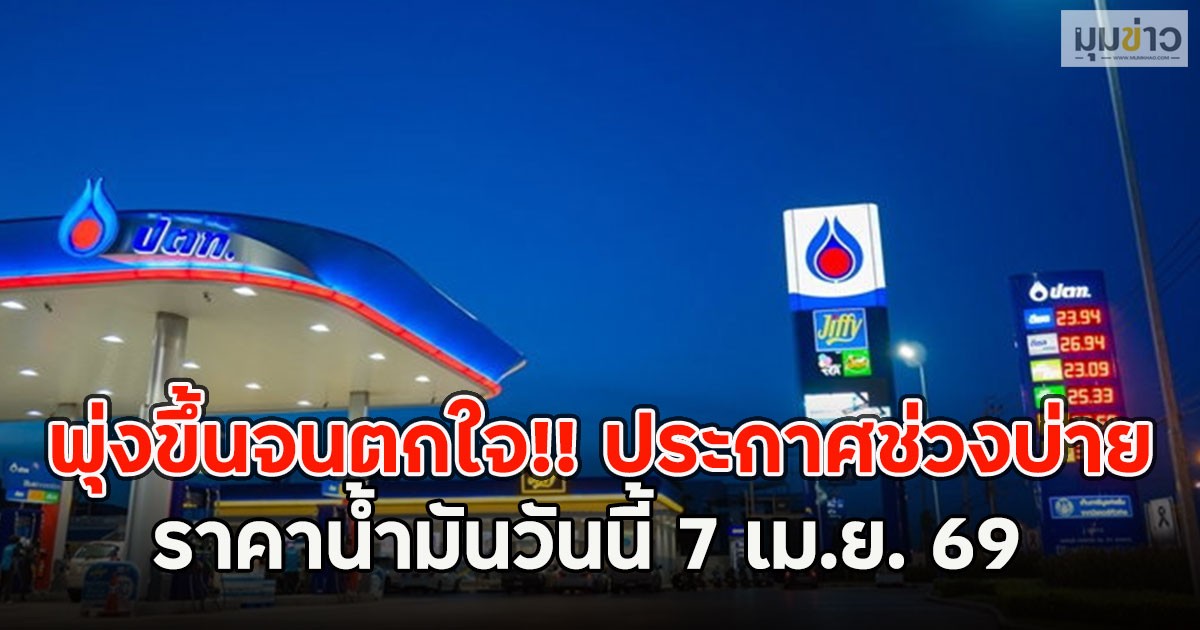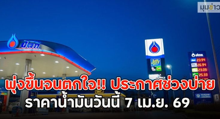 พุ่งขึ้นจนตกใจ!! ประกาศช่วงบ่าย ราคาน้ำมันวันนี้ 7เม.ย. 69