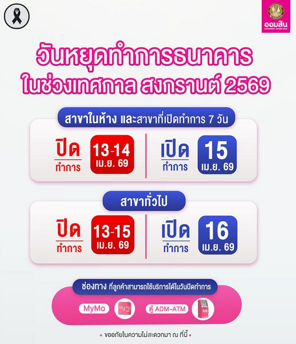 จากกรณี ธนาคารออมสิน ได้ออกมาเตือนถึงลูกค้าทุกคน เรื่องประกาศหยุดทำการธนาคารเรื่องในวันสงกรานต์