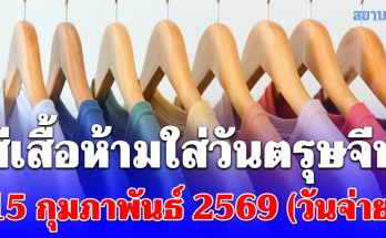 เตือนก่อนออกจากบ้าน! สีเสื้อห้ามใส่วันตรุษจีน 15 กุมภาพันธ์ 2569 (วันจ่าย) อ่านเพิ่มเติม