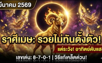 ♈️ ราศีเมษ มีนาคม 2569: “อาทิตย์ดับแสง” ระวังโดนแทงข้างหลัง! ⚔️ แต่ราหูให้ลาภก้อนโต อ่านเพิ่มเติม