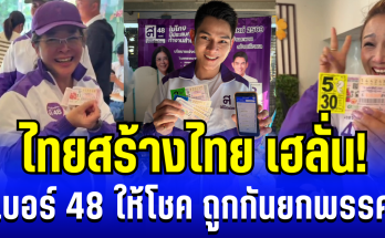 ไทยสร้างไทย เฮลั่น! เบอร์ 48 ให้โชค ถูกรางวัลกันยกพรรค รับเต็มๆก่อนเลือกตั้ง 8 ก.พ. 69